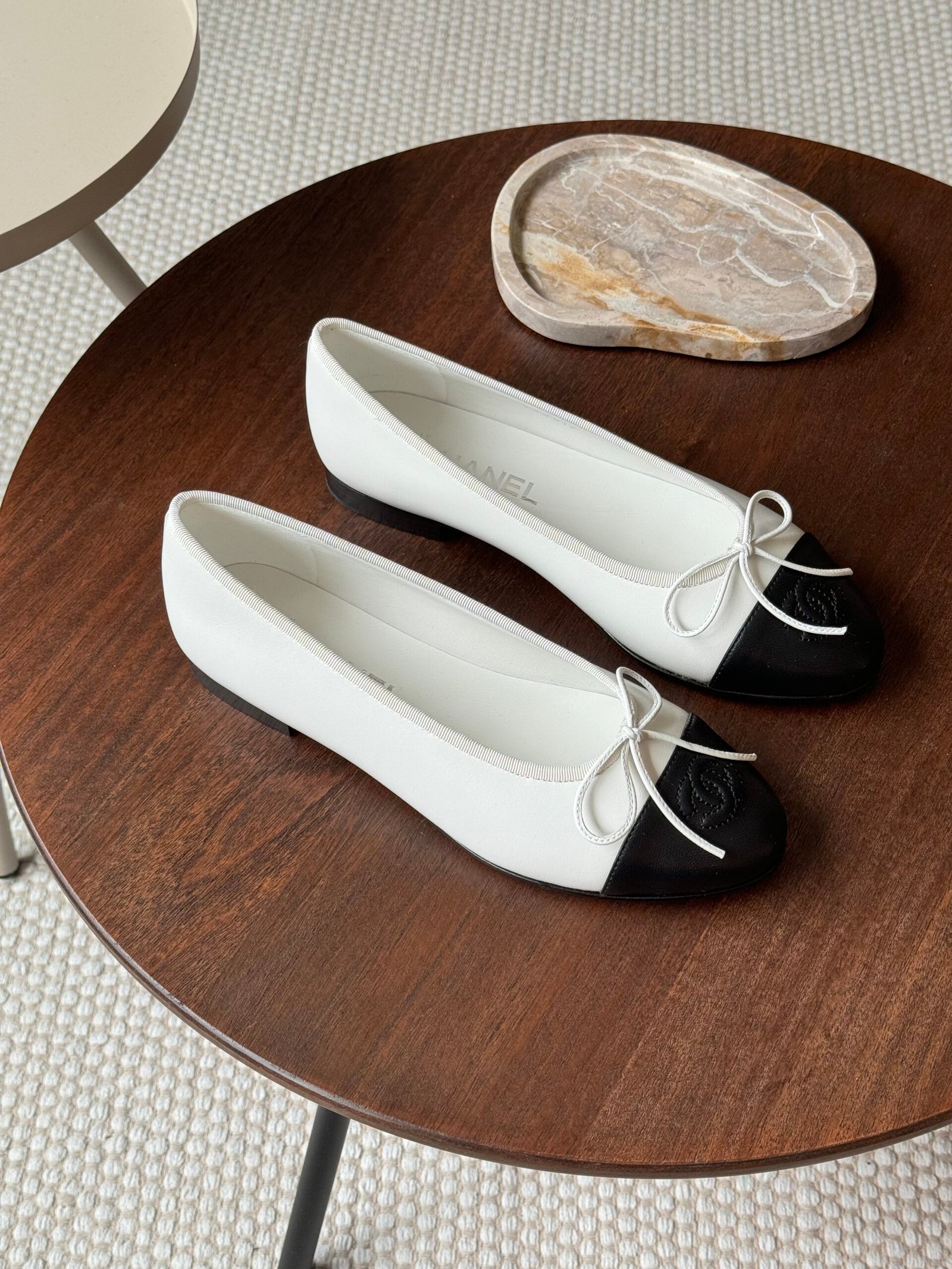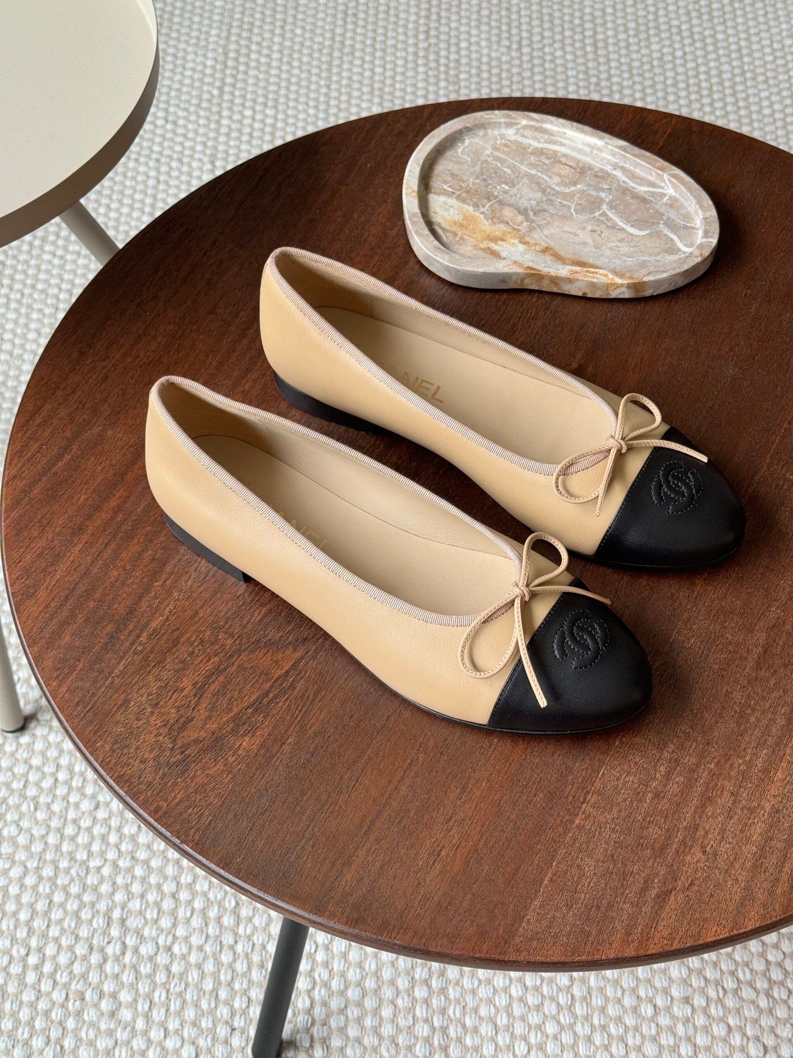 Classic Lambskin Flats in Beige & Black – The ultimate Parisian staple